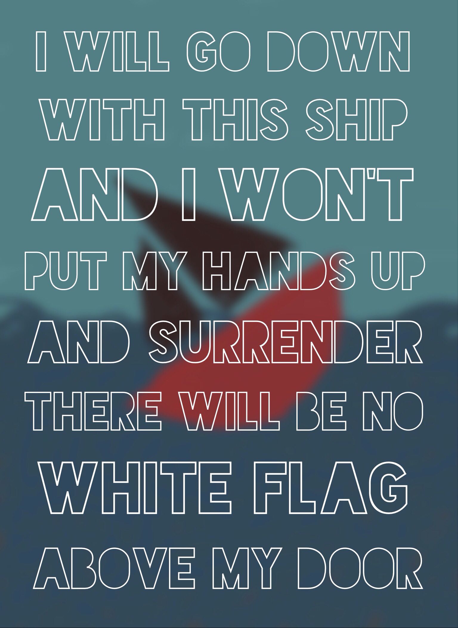 Dido sings of a defiant and immovable love. Like being "thrown alive into the lake of fire," she will “go down with this ship.” No “white flag” for her, no “putting her hands up in surrender.” She absolutely will not change.
